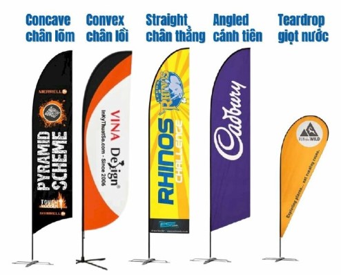 Thiết kế: Nội dung trên cờ thường bao gồm logo, slogan, tên thương hiệu, thông tin liên hệ, hoặc hình ảnh minh họa. Màu sắc thường rực rỡ, nổi bật để gây ấn tượng mạnh.